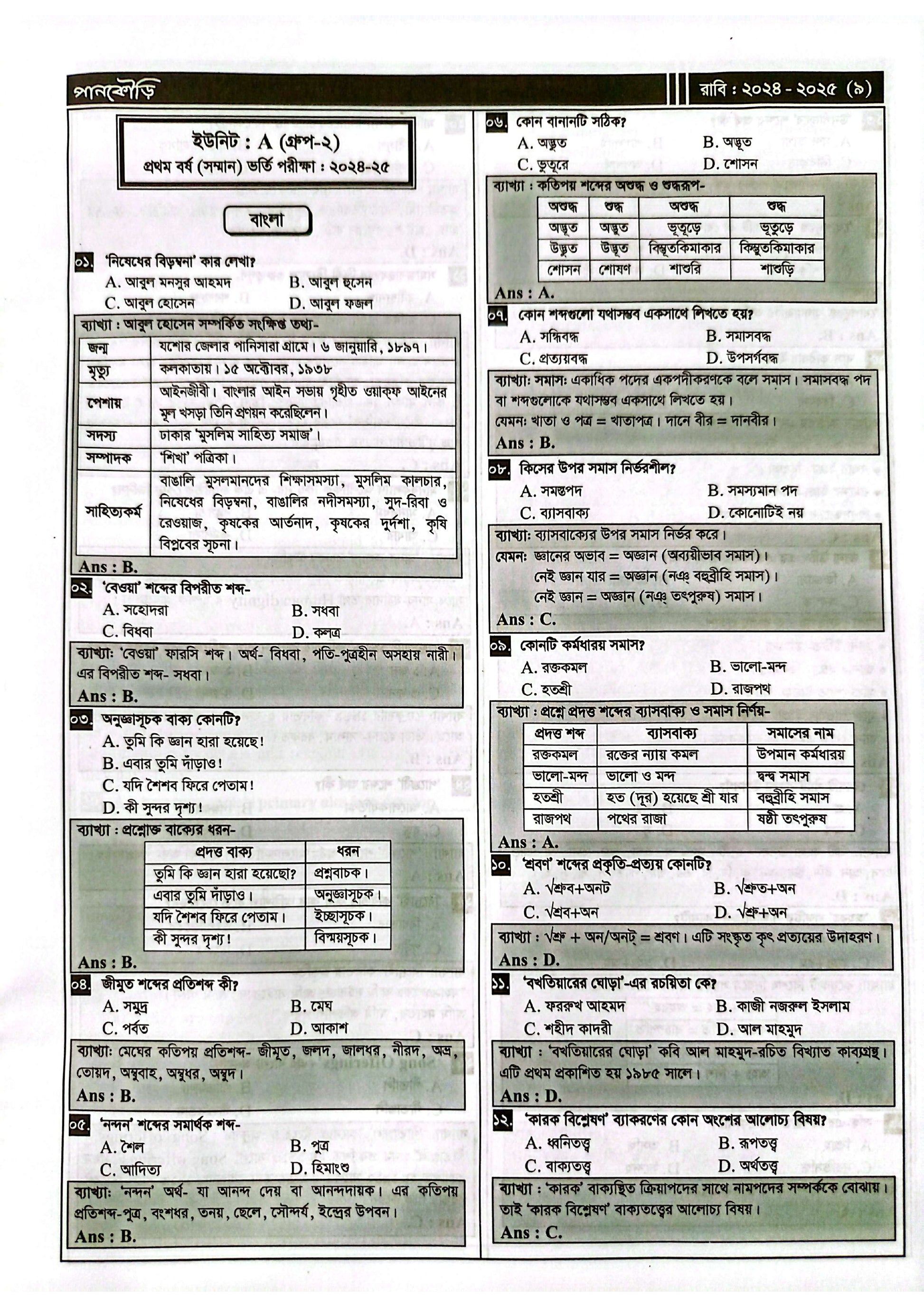 রাজশাহী বিশ্ববিদ্যালয়ের মানবিক বিভাগের (A ইউনিট) শতভাগ ব্যাখ্যা সম্বলিত একমাত্র প্রশ্নব্যাংক