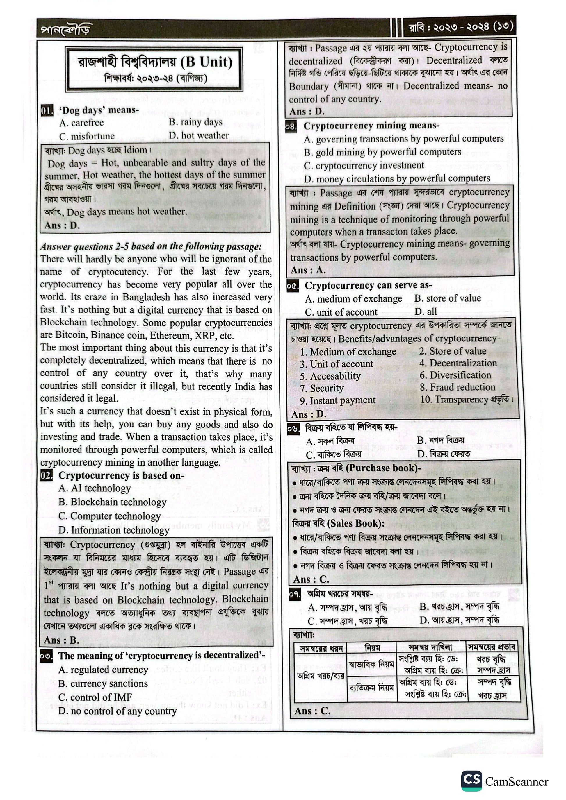 রাজশাহী বিশ্ববিদ্যালয়ের ব্যবসায় বিভাগের (B ইউনিট) শতভাগ ব্যাখ্যা সম্বলিত একমাত্র প্রশ্নব্যাংক